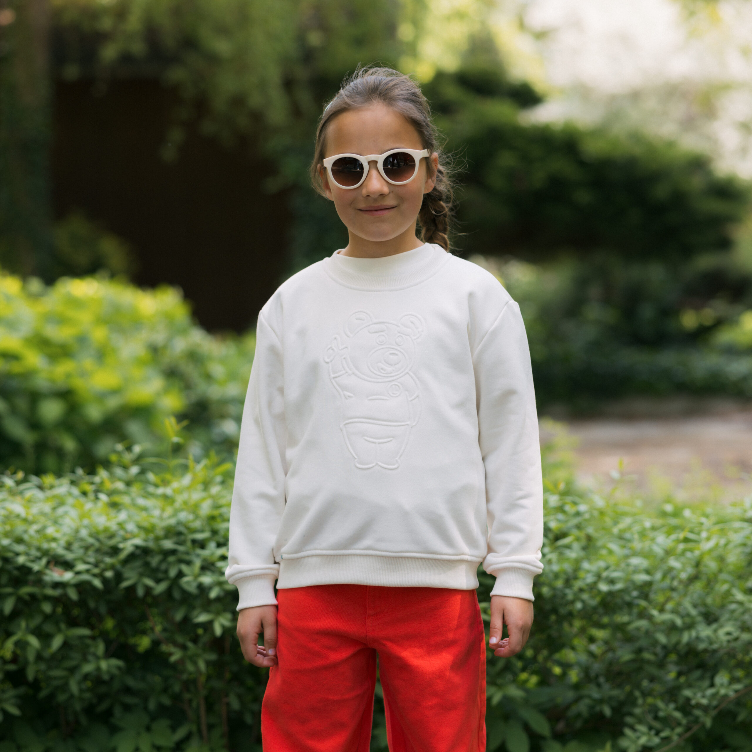 Ta bluza daje Twojemu dziecku to, co najważniejsze na co dzień: ciepło, wygodę i poczucie bycia sobą. Miękka dzianina z puszystym wnętrzem otula ciało i sprawia, że nawet chłodniejsze poranki nie stanowią problemu. Jasnobeżowy kolor dodaje lekkości, a delikatnie tłoczony Miś Kazek z przodu wywołuje uśmiech za każdym razem, gdy dziecko spogląda w lustro.