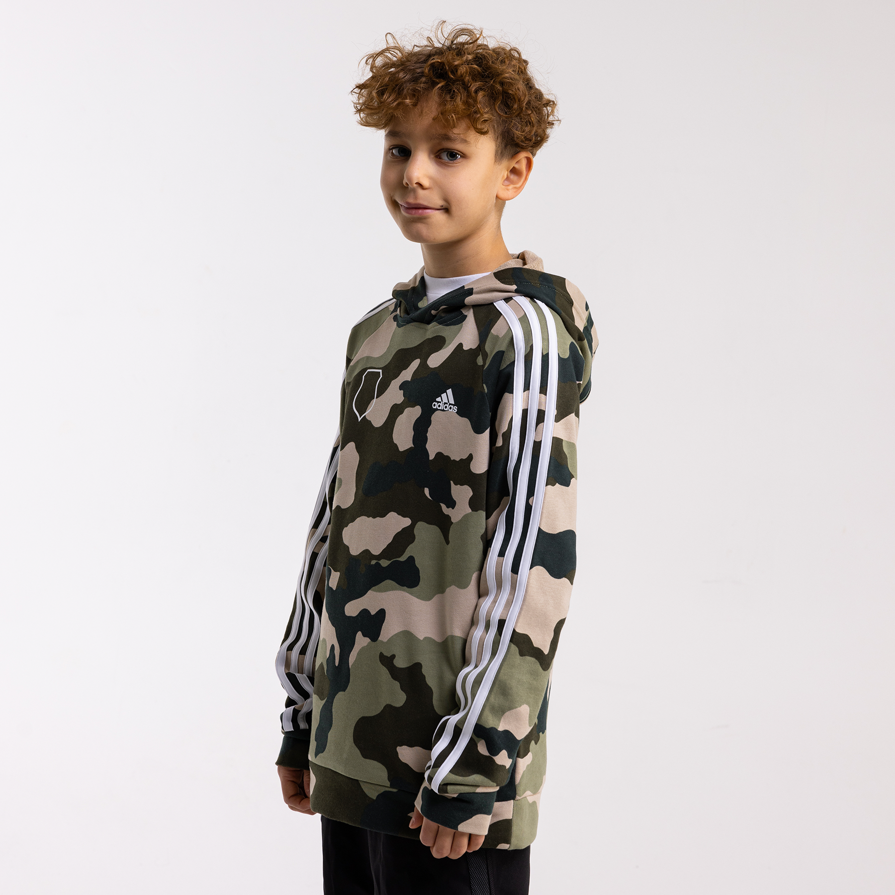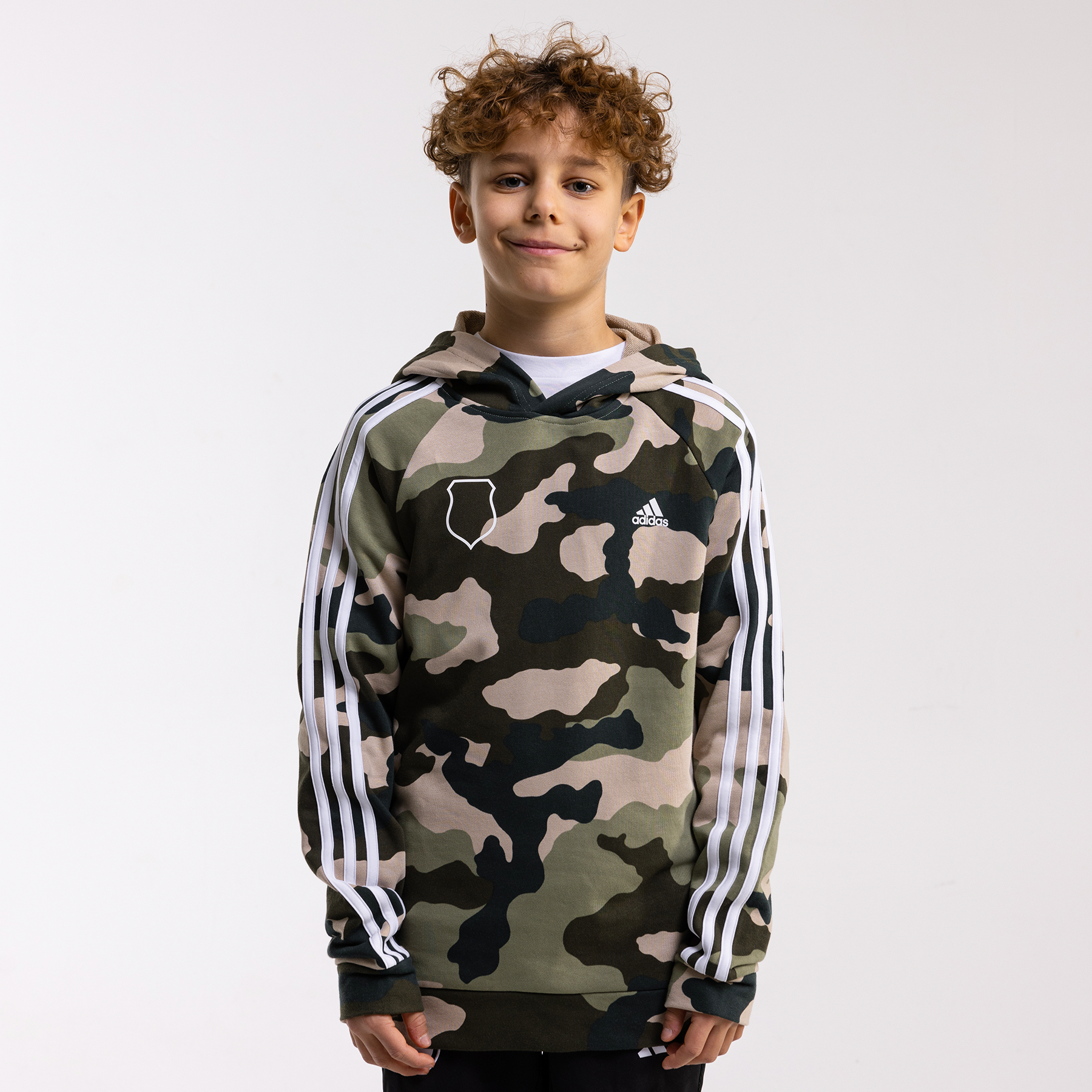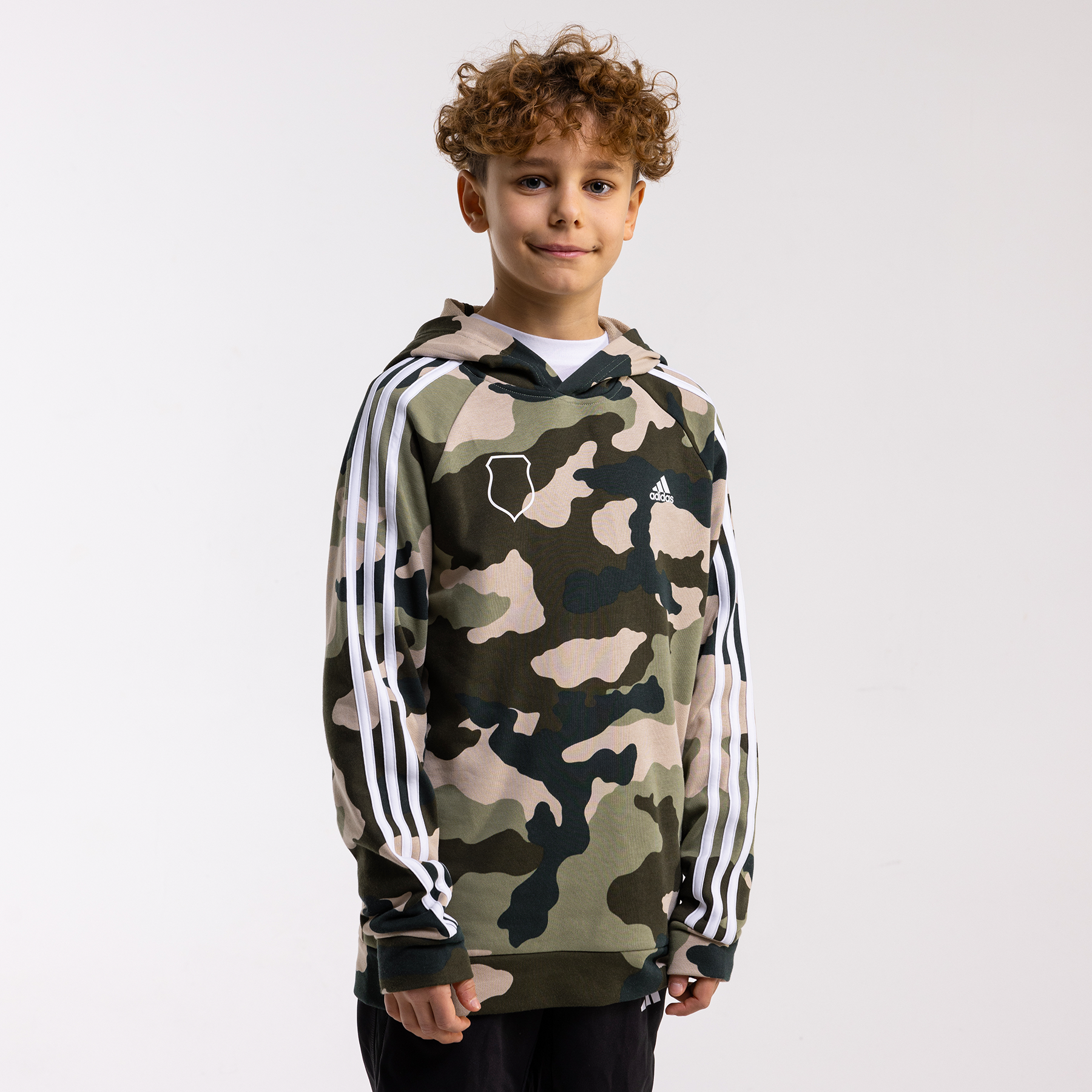 Młodzieżowa bluza z kapturem w kamuflażowym wzorze, ozdobiona konturem herbu Legii. Wygodna, ciepła i praktyczna na każdy dzień. Sprawdź w Legia FanStore!