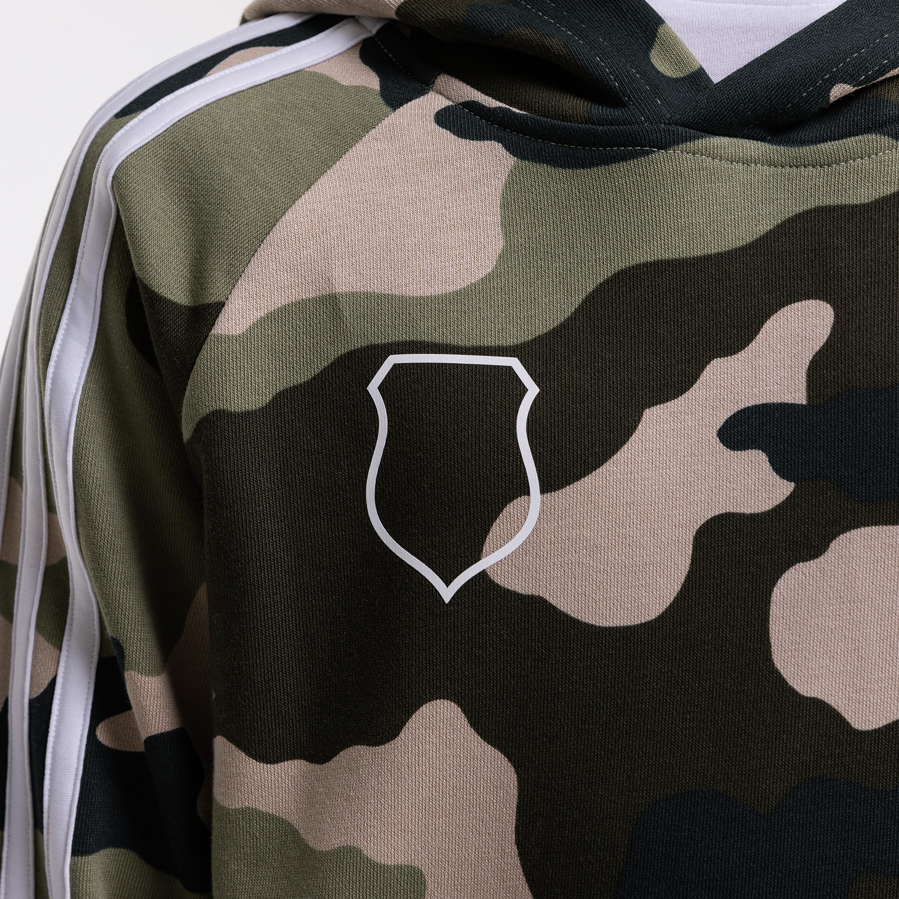 - Design: Kamuflażowy wzór, kontur herbu Legii na piersi, 3 paski adidas na rękawach.