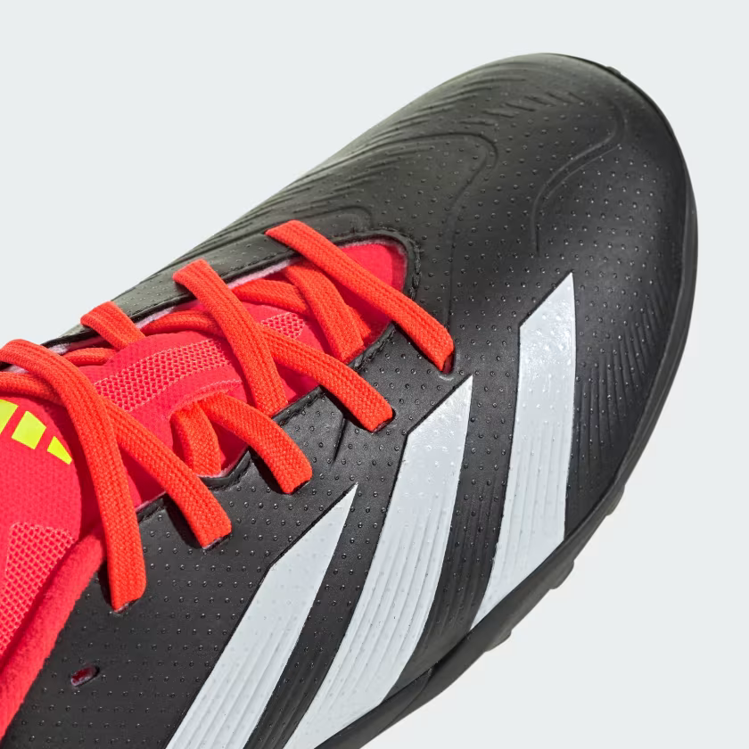 Gra polega na osiąganiu celów, a te buty piłkarskie zostały stworzone, aby trafiać do bramki. Za. Każdym. Razem. Wybierz perfekcję w nowych butach adidas Predator. Cholewka Hybridfeel tych młodzieżowych butów jest pokryta wypukłą teksturą i wyposażona w przyczepne nakładki Strikescale na wewnętrznym boku stopy została zoptymalizowana pod kątem precyzji strzałów. Gumowa podeszwa zewnętrzna z wypustkami zapewnia stabilizację na sztucznej murawie.