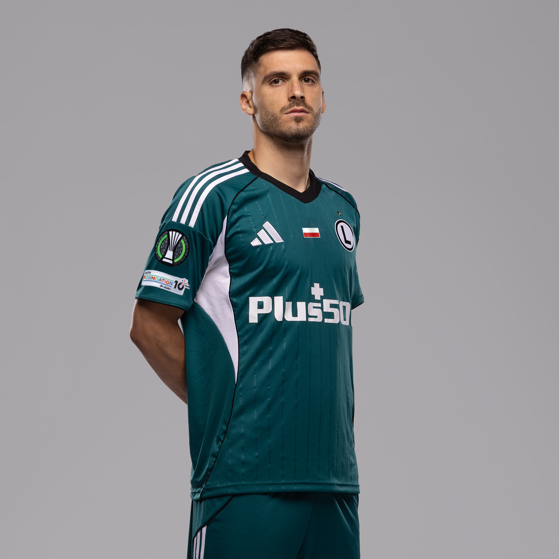 Koszulka meczowa Legia Warszawa przygotowana na Ligę Konferencji Europy UEFA w sezonie 2025/26. Koszulka posiada już badge Ligi Konferencji UEFFA oraz UEFA Foundation na prawym rękawku, nazwę sponsora Speedy na rękawku lewym, oraz flagę Polski na klatce piersiowej. Odkryj nową koszulkę meczową adidas Legii Warszawa na sezon 2025/26.