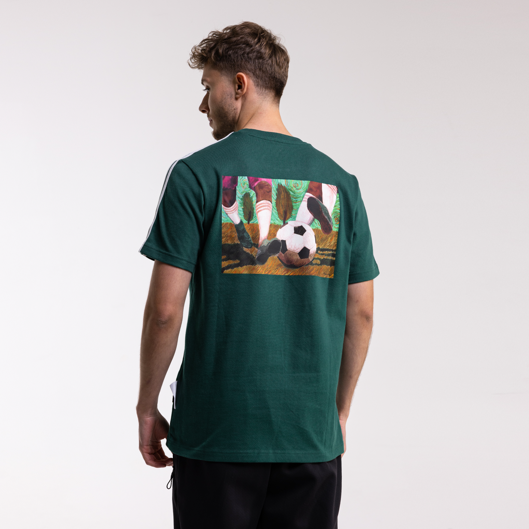 Prawdziwa sztuka zaczyna się na plecach! Duży, malarski nadruk przedstawiający piłkarską scenę wyróżnia ten model na tle klasycznych koszulek. Dynamiczne pociągnięcia pędzla i bogata kolorystyka dodają artystycznego wyrazu, sprawiając, że ta koszulka to nie tylko odzież, ale również forma ekspresji.