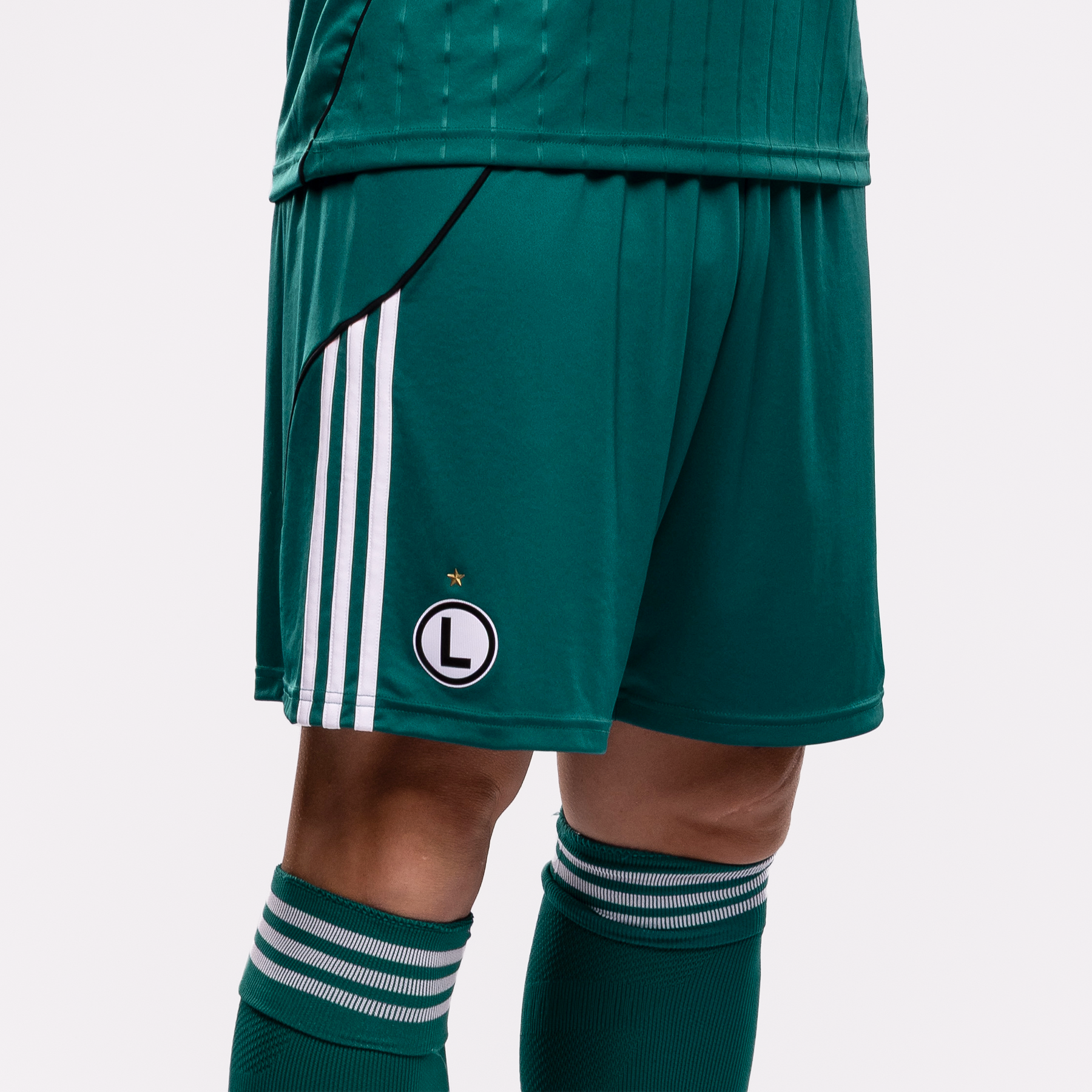 Nowe spodenki wyjazdowe Legii Warszawa na sezon 2025/26 w kolorze szmaragdowej zieleni