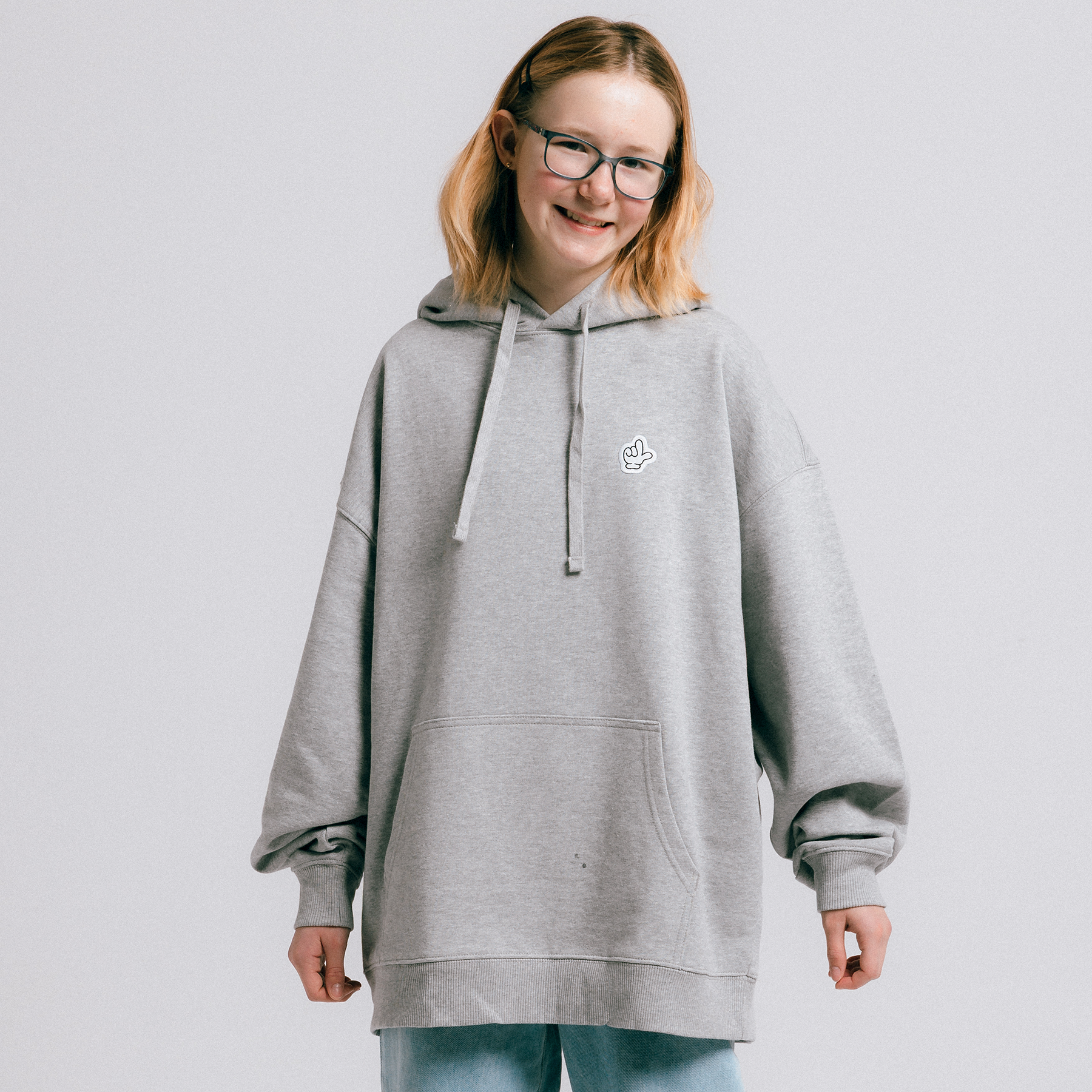Bluzę zdobi subtelna naszywka w kształcie dłoni układającej się w charakterystyczny znak „eLki”, bliski każdemu legioniście. Na plecach umieszczono dużą, okolicznościową grafikę – serce z literą „L” w środku, nawiązującą do logo Fundacji. To symbol pokazujący, że łączy nas jedno serce, a w nim widnieje „L” jak Legia.