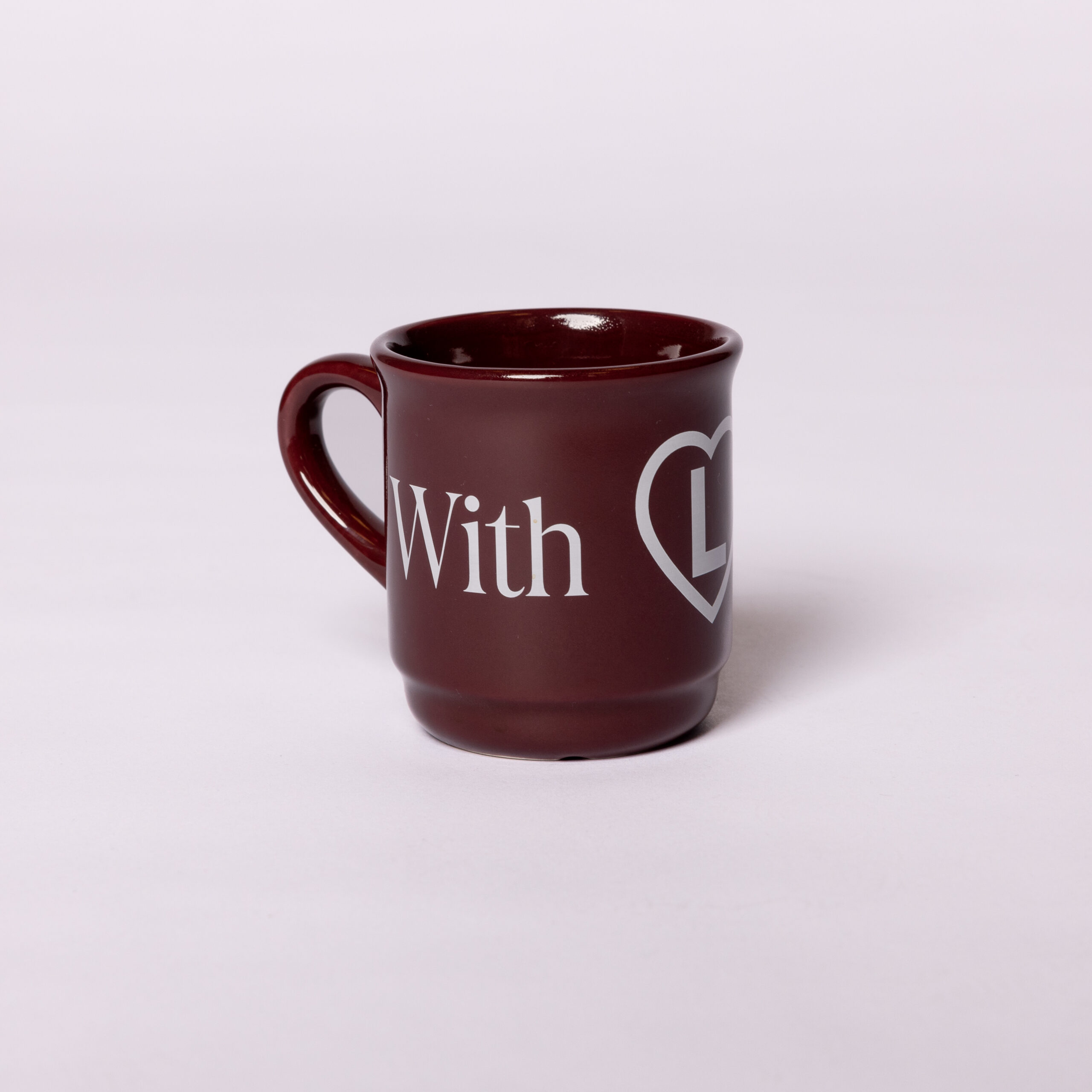 Stylowy kubek w głębokim bordowym kolorze, zaprojektowany z myślą o Walentynkach, dostępny w oficjalnym sklepie Legii Warszawa. Ozdobiony napisem “With Love” oraz symbolem serca z literą “L” w środku.